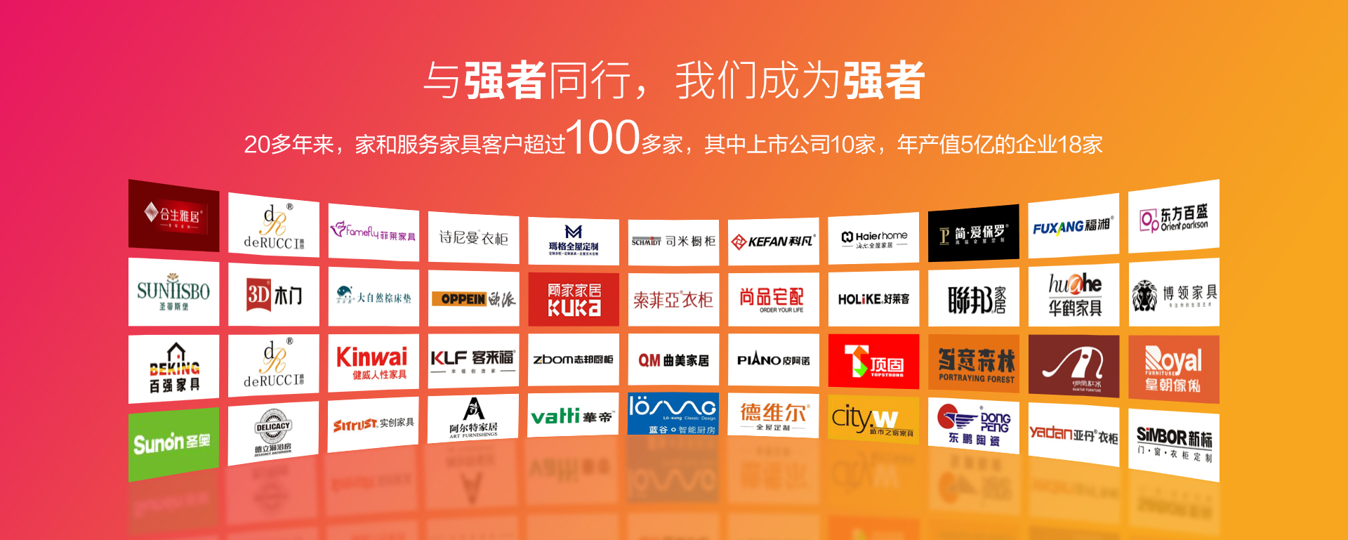專注大家居行業多年,與業內歐派、尚品宅配、索菲亞等眾多優勢品牌結成戰略合作伙伴關系。